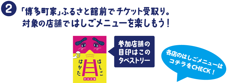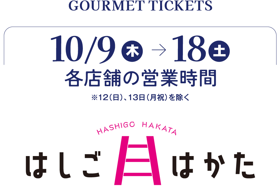 博多のまちには、まだまだ知らないおいしいお店がたくさん。そんな博多のまちの飲食店で利用できる限定800セットの「はしごチケット」(1枚800円×4枚セット)をご用意。「はしごチケット」では、お得なはしごはかた用メニューを楽しめます。お仕事終わりに、休日に、同僚やご家族、ご友人と博多の美食を2軒、3軒とはしごしてお楽しみください。
